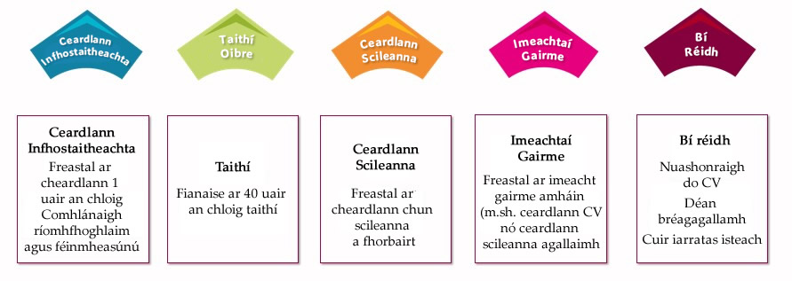 - do scileanna oibre a fhorbairt trí cheardlanna agus imeachtaí